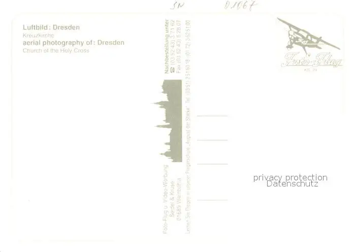 Dresden Kreuzkirche Fliegeraufnahme Dresden postalisch nicht gelaufen nach 1965 Erhaltung siehe scans [WerneD78] WernPID7
