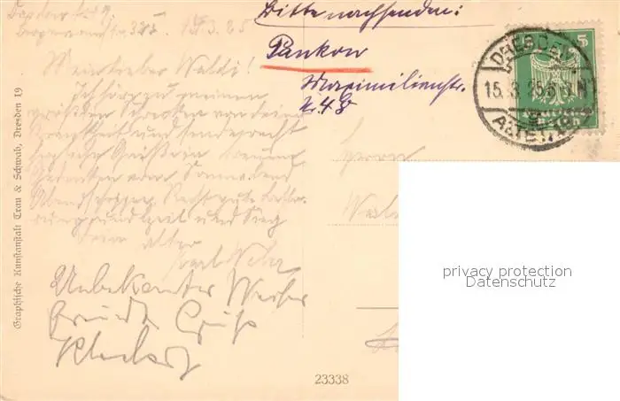 Dresden Kategorie Alte Ansichtskarten Postkarten bx75848 Dresden Wormser Hof Bergmannstrasse 20 Dresden postalisch gelaufen 1925 Erhaltung siehe scans [LiesaD40]
