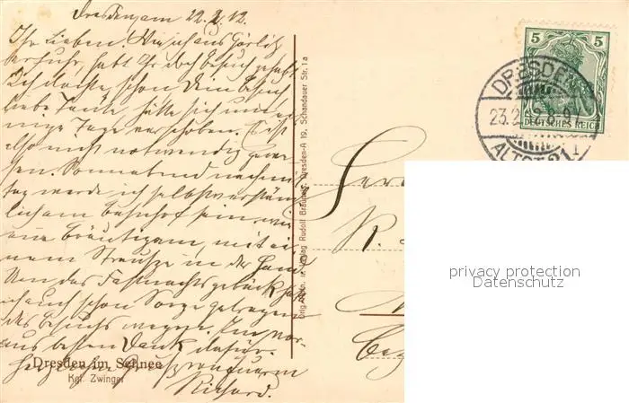 Dresden Zwinger im Winter Dresden postalisch gelaufen 1912 Erhaltung siehe scans [LiesaD40] LiesID40