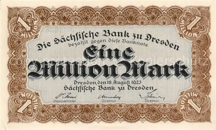 Dresden_Elbe Banknote Eine Million Mark Saechsische Bank postalisch nicht gelaufen 1923 Notgeldschein (keine Postkarte) Erhaltung siehe scans [LiesaD40] Notgeldschein (keine Postkarte) LiesID40