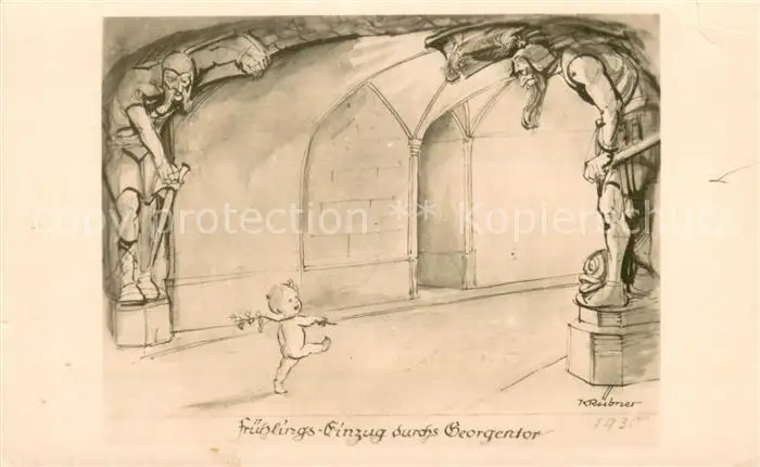 Dresden_Elbe Fruehlings-Einzug durchs Georgentor Kuenstlerkarte postalisch nicht gelaufen 1930 Erhaltung siehe scans [FriedD77] Frierer