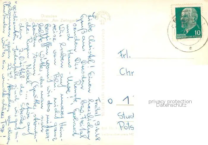 Dresden_Elbe HO-Gaststaette Am Zwinger postalisch gelaufen 1968 Erhaltung siehe scans [LiesaD40] LiesID40