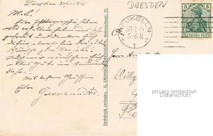 Dresden_Elbe Landschaftsgaertnerei Goldschmid postalisch gelaufen 1915 Erhaltung siehe scans [WerneD78] WernPID7