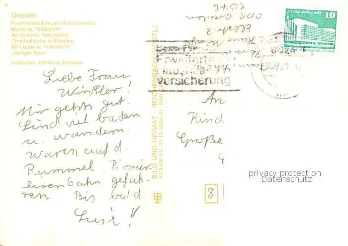 Dresden_Elbe Postmeilensaeule Mockritz Alt Gostritz Christuskirche Strehlen Alt Leubnitz Teilansicht Heiliger Born postalisch gelaufen nach 1965 Erhaltung siehe scans [FriedD77] Frierer