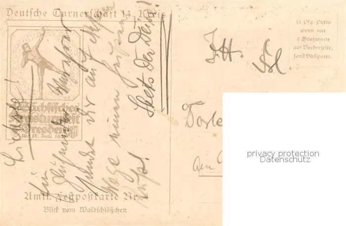 Dresden_Elbe Saechsisches Kreisturnfest - Blick v. Waldschloesschen postalisch nicht gelaufen 1921 Erhaltung siehe scans [LiesaD40] LiesID40