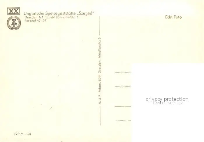 Dresden_Elbe Ungarische Speisegaststaette Szeged postalisch nicht gelaufen nach 1965 Erhaltung siehe scans [FriedD77] Frierer