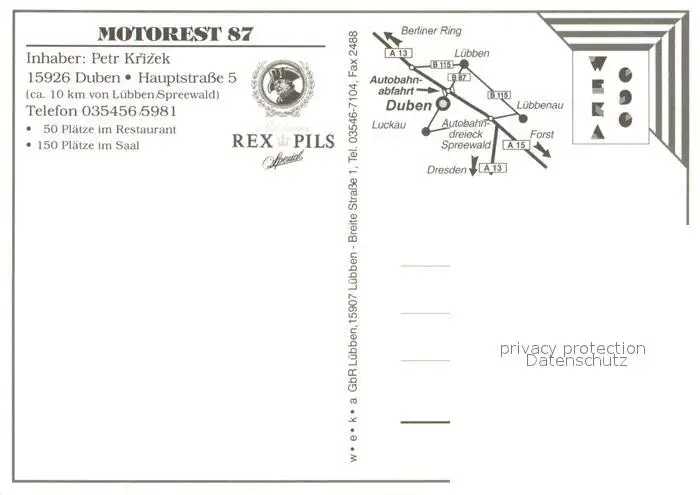 Duben Motorest Boehmisches Restaurant Kirche Duben postalisch nicht gelaufen nach 1965 Erhaltung siehe scans [FriedD77] Frierer