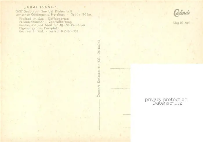 Duderstadt Seeburger See Graf Isang Duderstadt postalisch nicht gelaufen nach 1965 Erhaltung siehe scans [KathaD81] Kathoren