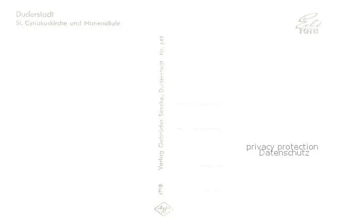 Duderstadt St Cyriakuskirche und Mariensaeule Duderstadt postalisch nicht gelaufen 1921-1965 Erhaltung siehe scans [WerneD78] WernPID7