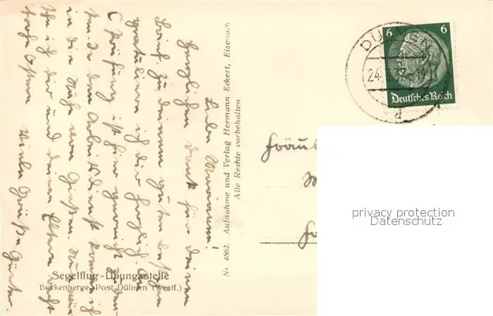 Duelmen Kategorie Alte Ansichtskarten Postkarten bx76293 Duelmen Segelflug uebungsplatz Duelmen postalisch gelaufen 1937 Erhaltung siehe scans [KathaD81]