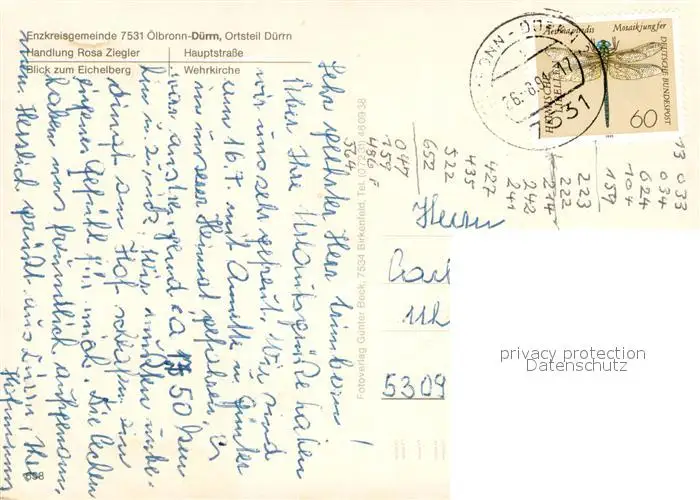 Duerrn Handlung Ziegler Fachwerkhaus Panorama Eichelberg Hauptstrasse Wehrkirche Duerrn postalisch gelaufen 1991 Erhaltung siehe scans [FriedD77] Frierer
