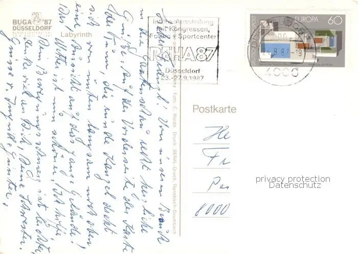 Duesseldorf BUGA 87 Labyrinth Fliegeraufnahme Duesseldorf postalisch gelaufen 1987 Erhaltung siehe scans [WerneD78] WernPID7