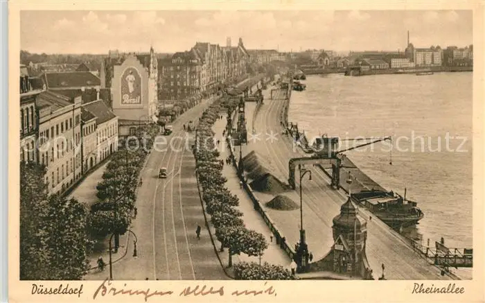 Duesseldorf Rheinallee Anleger Bootskran Frachtkahn Duesseldorf postalisch gelaufen 1940 Erhaltung siehe scans [FriedD77] Frierer