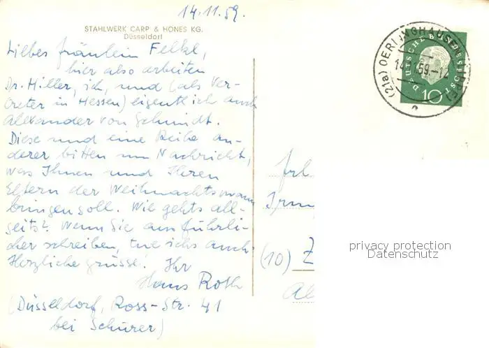 Duesseldorf Stahlwerke Carp und Hones KG Duesseldorf postalisch gelaufen 1959 Erhaltung siehe scans [WerneD78] WernPID7