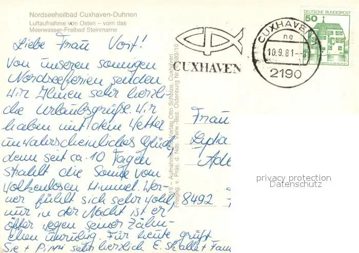 Duhnen_Nordsee Nordseeheilbad Meerwasser-Freibad Fliegeraufnahme Duhnen Nordsee postalisch gelaufen 1981 Erhaltung siehe scans [FriedD77] Frierer