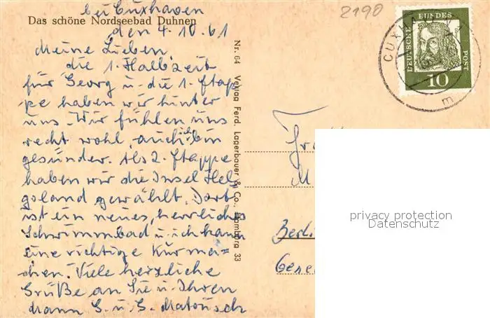 Duhnen_Nordsee Strand Stadtpanorama Duhnen Nordsee postalisch gelaufen 1961 Erhaltung siehe scans [KathaD81] Kathoren