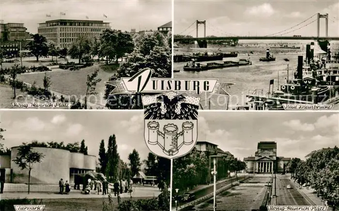 AK / Ansichtskarte Duisburg__Ruhr Koenig Heinrich Platz Neue Rheinbruecke Tierpark