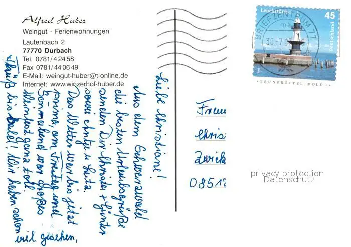 Durbach Weingut Alfred Huber Durbach postalisch gelaufen 2007 Erhaltung siehe scans [WerneD78] WernPID7
