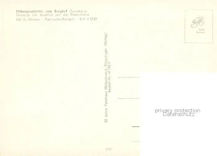 Durlach Hoehengaststaette zum Burghof Turmberg Durlach postalisch nicht gelaufen nach 1965 Erhaltung siehe scans [WerneD78] WernPID7