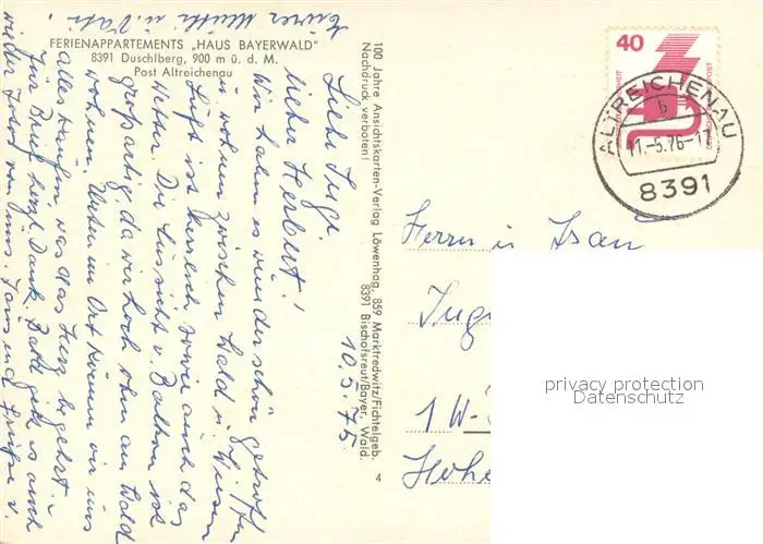 Duschlberg_Neureichenau Ferienappartements Haus Bayerwald Duschlberg Neureichenau postalisch gelaufen 1976 Erhaltung siehe scans [WerneD78] WernPID7