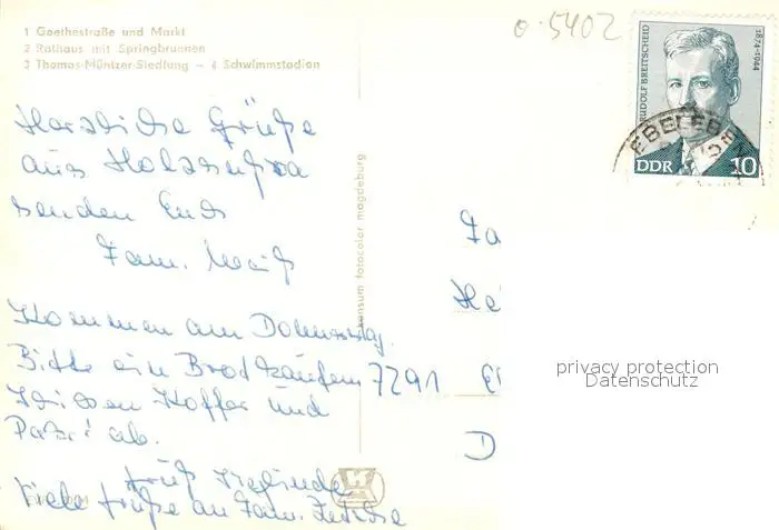 Ebeleben_Thueringen Goethestrasse Markt Rathaus Springbrunnen Thomas Muentzer Siedlung Schwimmbad Ebeleben_Thueringen postalisch gelaufen nach 1965 Erhaltung siehe scans [WerneD78] WernPID7