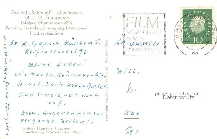 Ebenhausen_Isartal Gasthof Ritterguetl Irschenhausen Fliegeraufnahme Ebenhausen Isartal postalisch gelaufen 1960 Erhaltung siehe scans [WerneD78] WernPID7