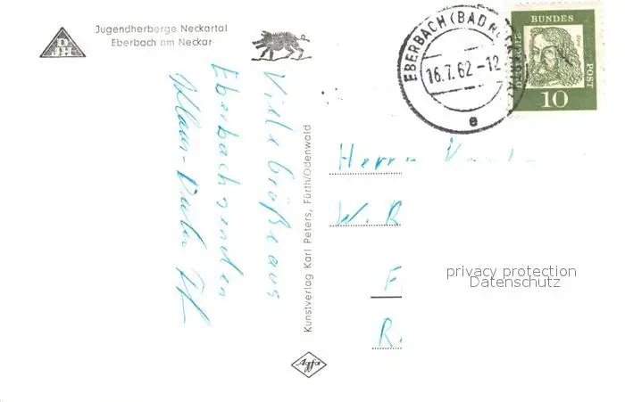 Eberbach Neckar Kategorie Alte Ansichtskarten Postkarten bx64160 Eberbach_Neckar Neckartal Jugendherberge Eberbach Neckar postalisch gelaufen 1962 Erhaltung siehe scans [KathaD81]