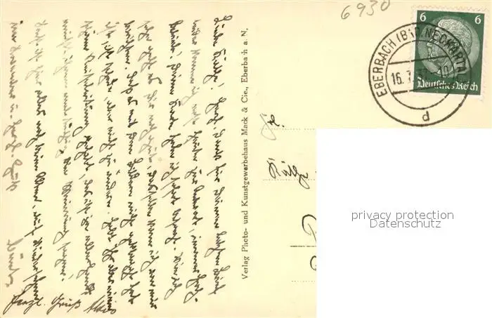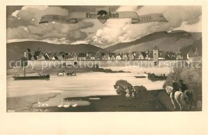 Eberbach_Neckar Ortsansicht Eberbach Neckar postalisch gelaufen 1937 Erhaltung siehe scans [WerneD78] WernPID7