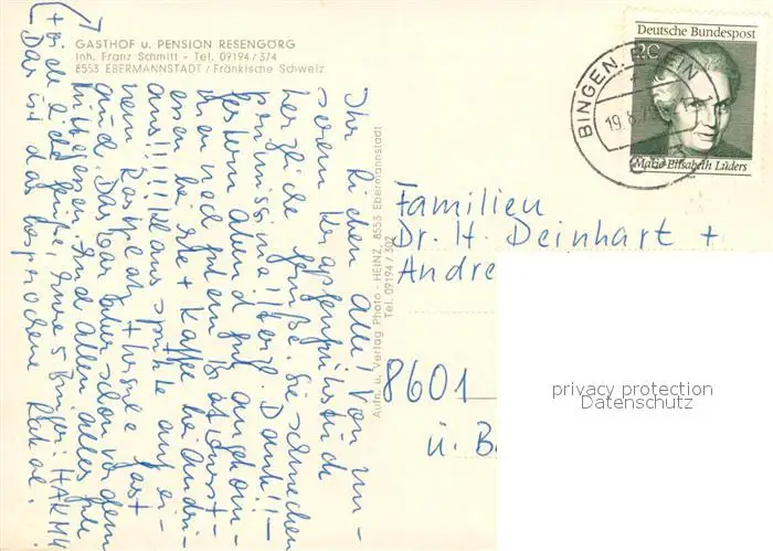 Ebermannstadt Kategorie Alte Ansichtskarten Postkarten bx45462 Ebermannstadt Gasthaus Refengoerg Freibad Ebermannstadt postalisch gelaufen 1970 Erhaltung siehe scans [LiesaD40]