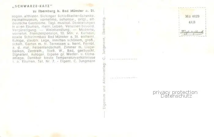 Ebernburg Huttenkeller in der Schwarzen Katz Historischer Pulverbeutel Schinderhannes Schlosskeller Schenke Ebernburg postalisch nicht gelaufen 1921-1965 Erhaltung siehe scans [FriedD77] Frierer