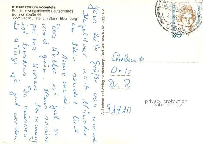 Ebernburg Kursanatorium Rotenfels Restaurant Ebernburg postalisch gelaufen 1995 Erhaltung siehe scans [FriedD77] Frierer