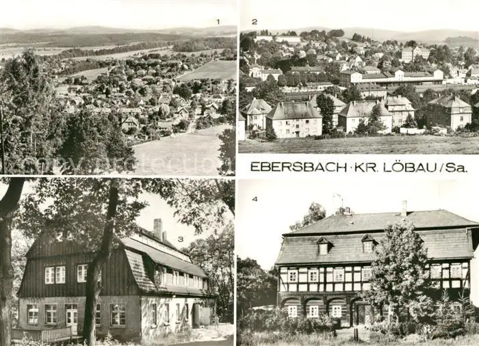 AK / Ansichtskarte Ebersbach_Sachsen Landschaftspanorama Blick vom Schlechteberg Gaststaette Humboldtbaude Umgebindehaus Alte Mangel Denkmalschutz Ebersbach Sachsen