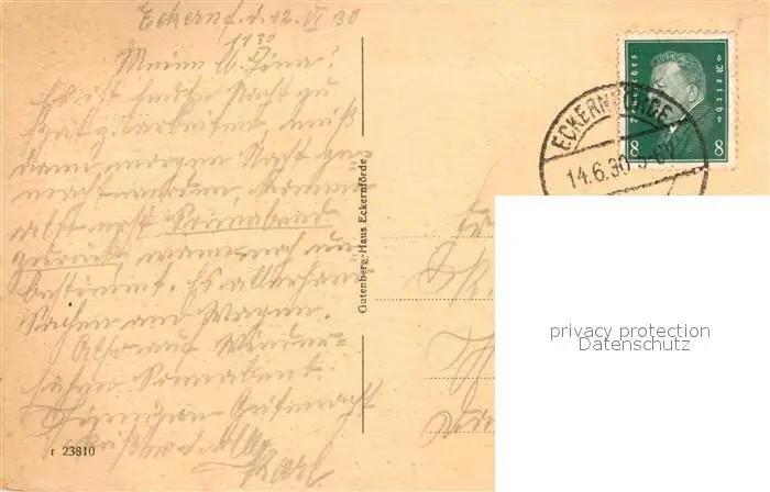 Eckernfoerde Gedenkstaette Eckernfoerde postalisch gelaufen 1930 Erhaltung siehe scans [LiesaD40] LiesID40