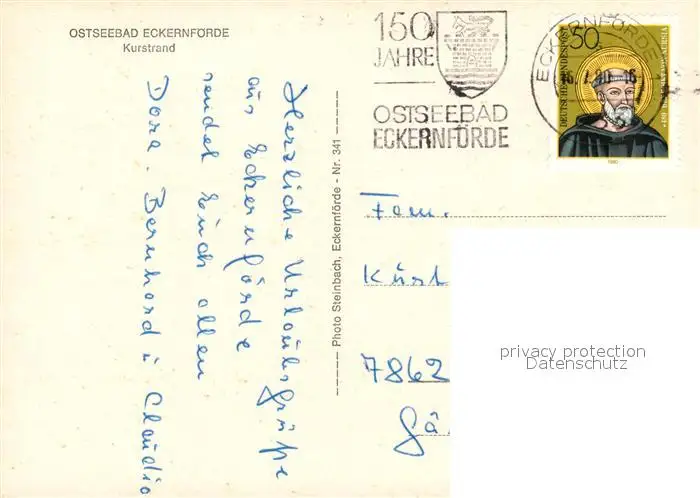 Eckernfoerde Kurstrand Seebruecke Eckernfoerde postalisch gelaufen 1980 Erhaltung siehe scans [WerneD78] WernPID7