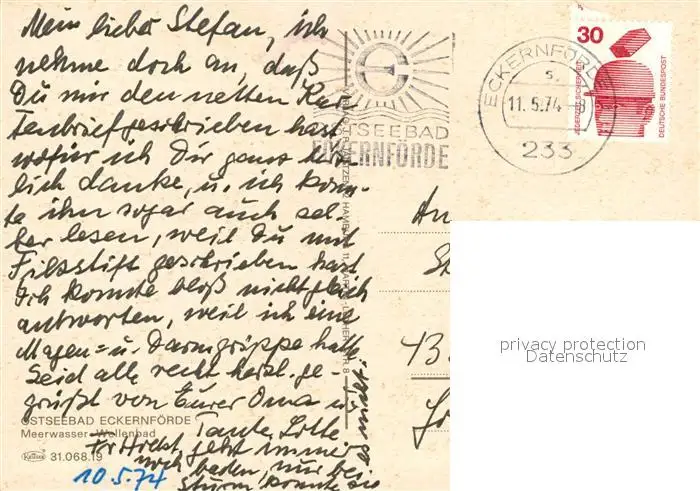 Eckernfoerde Meerwasser Wellenbad Eckernfoerde postalisch gelaufen 1974 Erhaltung siehe scans [WerneD78] WernPID7