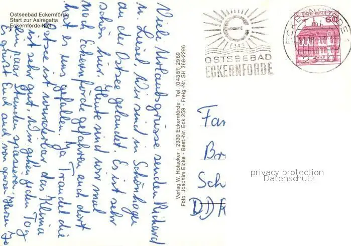 Eckernfoerde Ostseebad Start zur Aalregatta Fliegeraufnahme Eckernfoerde postalisch gelaufen 1987 Erhaltung siehe scans [FriedD77] Frierer