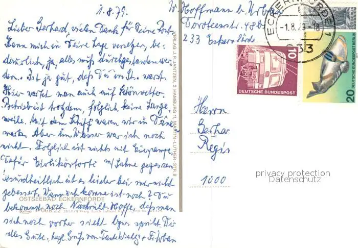 Eckernfoerde Stadtpanorama Strand Eckernfoerde postalisch gelaufen 1979 Fliegeraufnahme Erhaltung siehe scans [FriedD77] Fliegeraufnahme Frierer