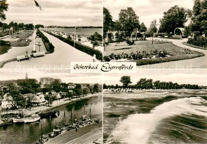 AK / Ansichtskarte Eckernfoerde Uferpromenade Park Konzertpavillon Strand Fischerhafen Eckernfoerde