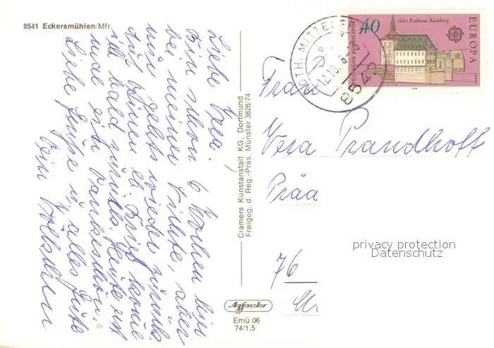 Eckersmuehlen Kategorie Alte Ansichtskarten Postkarten bx62052 Eckersmuehlen Fliegeraufnahme Eckersmuehlen postalisch gelaufen 1978 Erhaltung siehe scans [KathaD81]