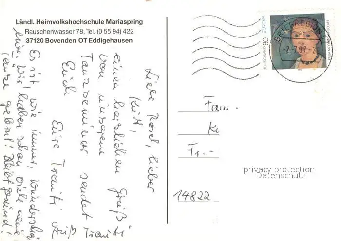 Eddigehausen Laendl Heimvolkshochschule Mariaspring Gastraum Gymnastikgruppe Schulungsraum Eddigehausen postalisch gelaufen 1997 Erhaltung siehe scans [WerneD78] WernPID7
