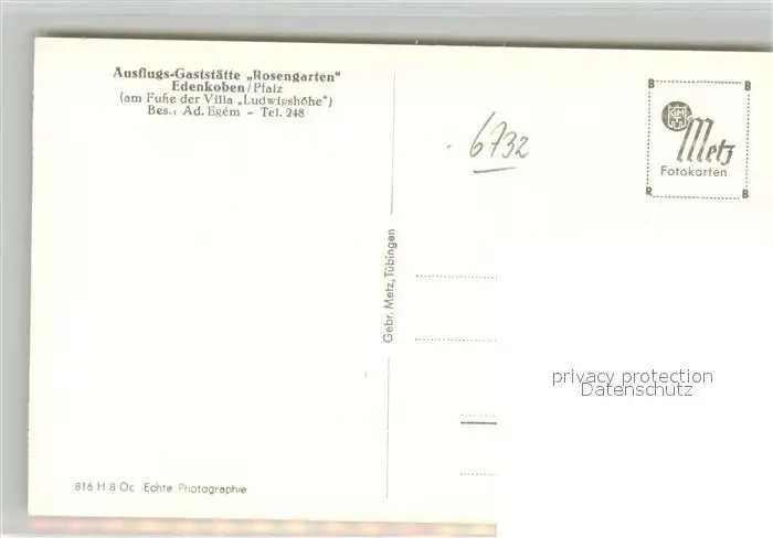 Edenkoben Ausflugs Gaststaette Rosengarten Edenkoben postalisch nicht gelaufen 1921-1965 Erhaltung siehe scans [WerneD78] WernPID7