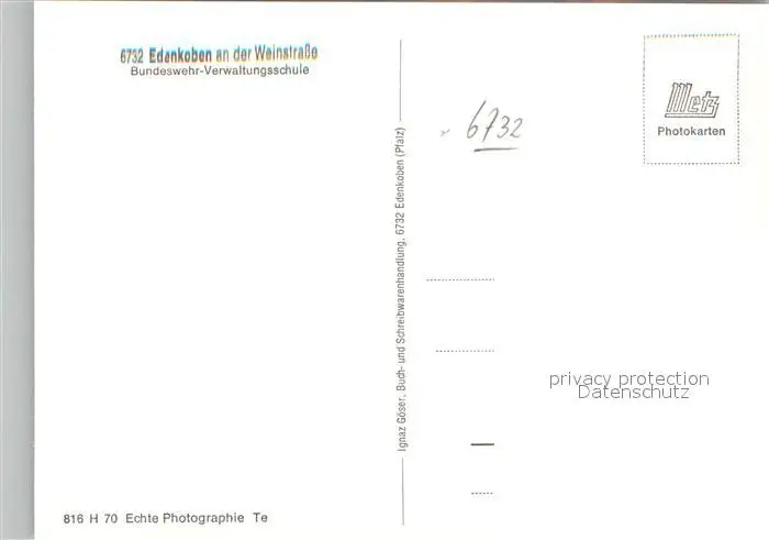 Edenkoben Bundeswehr Verwaltungsschule Edenkoben postalisch nicht gelaufen 1921-1965 Erhaltung siehe scans [WerneD78] WernPID7