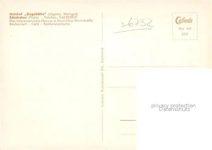 Edenkoben Gutshof Ziegelhuette Restaurant Edenkoben postalisch nicht gelaufen 1921-1965 Erhaltung siehe scans [WerneD78] WernPID7