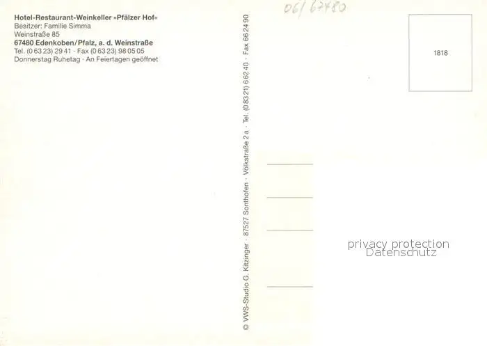 Edenkoben Hotel Restaurant Weinkeller Pfaelzer Hof Kegelbahn Gaststube Bar Edenkoben postalisch nicht gelaufen nach 1965 Erhaltung siehe scans [WerneD78] WernPID7