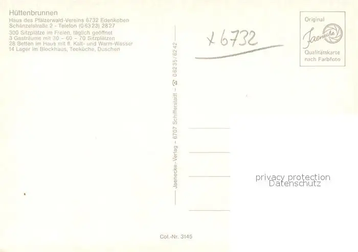 Edenkoben Huettenbrunnen Gastraeume Gondelteich Edenkoben postalisch nicht gelaufen 1921-1965 Erhaltung siehe scans [WerneD78] WernPID7