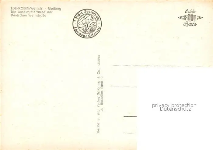 Edenkoben Rietburg Aussichtsterrasse der Deutschen Weinstrasse Edenkoben postalisch nicht gelaufen 1921-1965 Erhaltung siehe scans [WerneD78] WernPID7