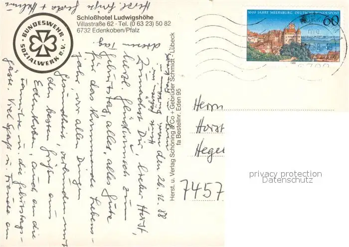 Edenkoben Schlosshotel Ludwigshoehe Gastraeume Edenkoben postalisch gelaufen 1988 Erhaltung siehe scans [WerneD78] WernPID7