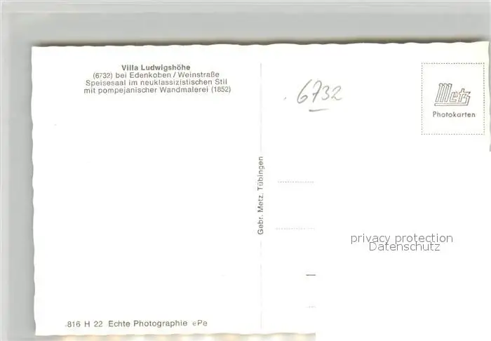 Edenkoben Villa Ludwigshoehe Speisesaal Edenkoben postalisch nicht gelaufen 1921-1965 Erhaltung siehe scans [WerneD78] WernPID7