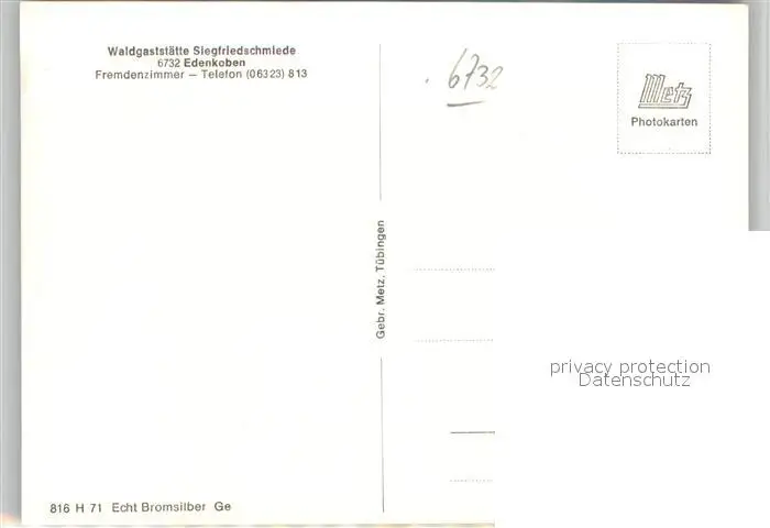 Edenkoben Waldgaststaette Siegfriedschmiede Edenkoben postalisch nicht gelaufen 1921-1965 Erhaltung siehe scans [WerneD78] WernPID7