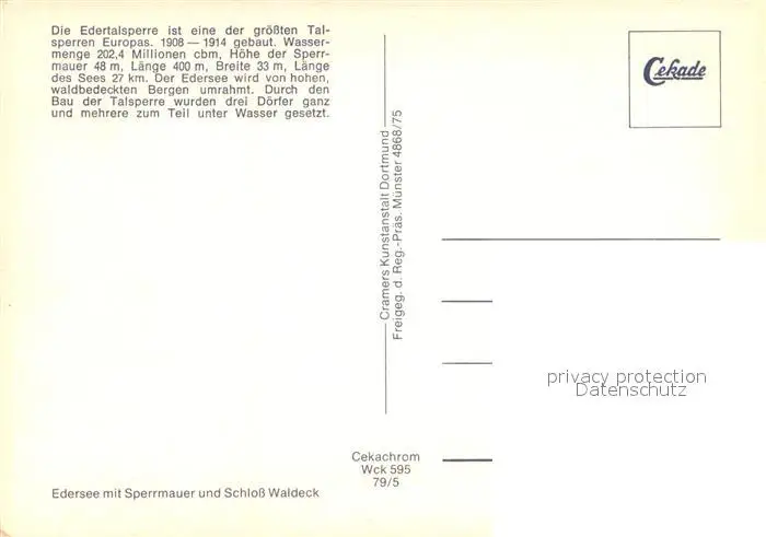 Edersee Edertalsperre Sperrmauer Schloss Waldeck Edersee postalisch nicht gelaufen 1979 Fliegeraufnahme Erhaltung siehe scans [FriedD77] Fliegeraufnahme Frierer